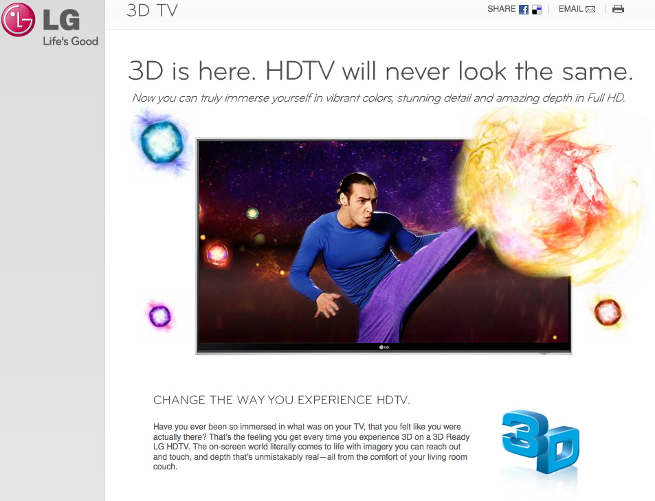 Prior to the launch of Sky 3D, Europe’s first 3DTV channel, and as LG unveils its impressive new 3D product line-up at IFA, the two companies have confirmed they will be expanding their 3DTV partnership. Sky is formally endorsing LG as its first choice for 3DTVs, due to the extra choice offered to consumers thanks to its wide range of passive and active 3D TVs. The partnership, which will see the two brands embark on joint marketing as well as consumer awareness, education, and demonstration activity, builds on a relationship that has already seen more than a million people enjoy 3DTV in pubs and clubs nationwide. From October 1st, Sky will start broadcasting its 3D channel to living rooms across the UK and Ireland, with live coverage of the Ryder Cup from Celtic Manor, and will promote LG’s extensive range of 3DTVs to the 2.9 million customers who already have a Sky+HD box and are, therefore, 3D-ready. Throughout the remainder of the year, both brands will be providing nationwide demonstrations of the new Sky content on LG 3D TVs to help consumers understand the technology available and enjoy the immersive viewing experience it offers. Plus, LG and Sky will be providing exclusive offers to new and existing Sky customers, which will in turn encourage people to make 3D a reality in their living room.