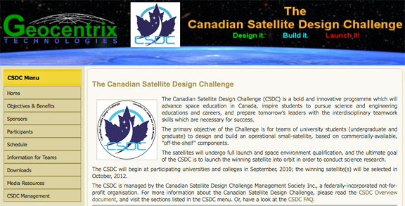 ....a $12,000 grant from the Canadian Space Agency (CSA) . The grant was awarded under the CSA’s Grants and Contributions Program to support Research, Awareness and Learning in Space Science and Technology. The grant will be used for a Solar Panel Workshop which will be held at Neptec Design Group in Ottawa on February 21 and 22 (2012). The Workshop will be attended by students from 12 Canadian universities which are participating in the Canadian Satellite Design Challenge (CSDC), a national competition for university teams to design and build a small CubeSat satellite. The satellite will be approximately half the size of a shoe-box (10x10x30 cm) and will weigh no more than four kilograms (nine pounds).