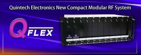 - Quintech Electronics and Communications Inc. will be displaying their new Q-Flex Modular Chassis at NAB. The Q-Flex is a compact (4RU) housing environment for Quintech RF modules. The Q-Flex chassis provides 21 multipurpose bays, which support either single or double width modules. One chassis can house up to eight 1X16 BNC splitters and combiners and two 150W internal power supplies in a redundant configuration. The system may be powered by QPS series hot swappable supplies, external power supplies, or can be stand-alone if populated with passive RF modules. The Q-Flex chassis contains a proprietary backplane to facilitate high speed inter-module communication, module addressing, and power supply status monitoring.