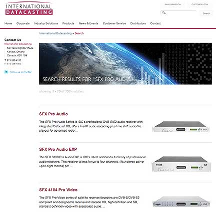 The SFX Pro Audio Series is IDC's professional DVB-S/S2 audio receiver with integrated Datacast XD and offers live IP audio decoding plus time shift audio file playout for advanced radio networks. The value of the contract is not being released for competitive reasons. The Company expects the product will be delivered during IDC's third fiscal quarter ending October 31, 2010. "The SFX Pro Audio series is the dominant product in the commercial radio market and we continue to set the pace with new innovations to our product lines to ensure that we maintain our market leadership", said Fred Godard, IDC's President & CEO.
