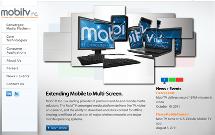 • MobiTV, Inc. is introducing a TV Everywhere solution for cable, satellite and IPTV service providers, leveraging the company's expertise in providing video delivery solutions for mobile devices, personal computers and other Internet-enabled consumer electronics. Based on MobiTV's existing cloud-based video distribution platform, TV service providers can now offer their subscribers live and on-demand programming for viewing inside and outside the home on personal computers, tablets and a broad range of mobile devices. The MobiTV TV Everywhere solution is easily adaptable for seamless integration with existing TV infrastructure and back-end systems. Customers looking to extend their content to other platforms may leverage MobiTV's existing ingestion and encoding efforts. As an end-to-end managed service that leverages MobiTV's cloud-based video distribution platform, the TV Everywhere solution can help TV service providers reduce time to market and costs associated with deployment and operations. Additionally, the service will be supported 24x7 by the experienced team in the MobiTV network operations center. The MobiTV TV Everywhere solution, designed for TV service providers, is immediately deployable across a broad range of devices both inside and outside the home. The easily implemented solution includes: