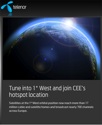 • Telenor Satellite Broadcasting (TSBc) has launched High TV 3D, a 24/7 channel for the Nordic region, on TSBc’s THOR 6 satellite, located at 1 degree West, one of Europe’s fastest-growing orbital hotspots. High TV 3D will initially reach audiences in Norway only and will distributed to viewers via Canal Digital’s DTH satellite-TV service as part of the standard family package. High TV 3D, one of the first 3DTV entertainment channels to broadcast worldwide, is the first such channel to be launched in the Nordic region. Its launch follows successful trials and one-off broadcasts (both free-to-air and subscriber-based) of live sports events. High TV 3D is available from October 27 as part of the channel bouquet offered by Canal Digital, the leading DTH operator in the Nordic region.