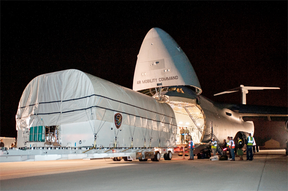 Lockheed Martin delivered the third AEHF communications satellite to Cape Canaveral Air Force Station, Fla., aboard a C-5M Galaxy, which is the modernized variant of the Lockheed Martin-produced C-5. Photo courtesy of Lockheed Martin.