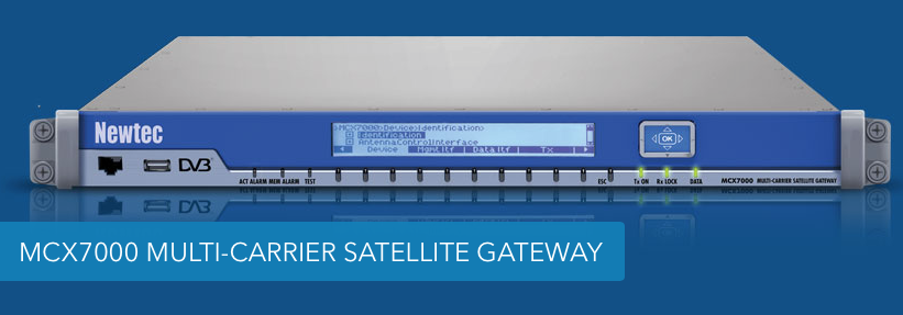 MCX7000 Multi-Carrier Satellite Gateway—Newtec MCX7000, a dense Multi-Carrier Satellite Gateway for broadcast, video contribution, exchange and distribution, up to four modulators and three demodulators