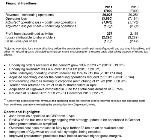 [SatNews] Vislink plc recently reported the Company's interim results for the six months ended June 30, 2011.
