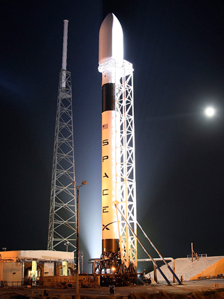 The SpaceX Falcon 9 launch vehicle on pad.