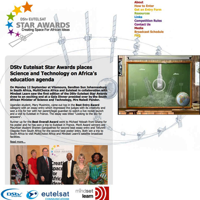 Collins Khumalo, President of MultiChoice Africa, added, “As a business born and bred in Africa, MultiChoice Africa is keenly aware of the challenges faced by many countries across the continent - specifically in terms of access to ICTs and the development of science and technology. With education as a key focus of our corporate social investment programmes, our decision to initiate this competition with Eutelsat and Mindset Learn created a natural synergy which was able to stimulate education and interest around satellites and their possible applications in Africa. An investment in the youth is an investment in the future - and we believe that education in the area of science and technology will make a fundamental difference to this future.”