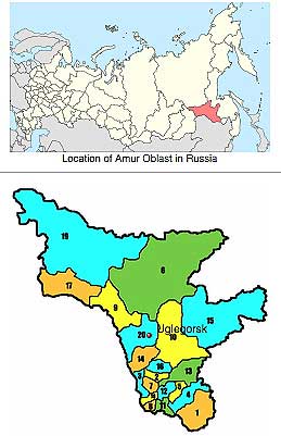 Map of Russia showing the location of Ugelgorsk in Amur Oblast