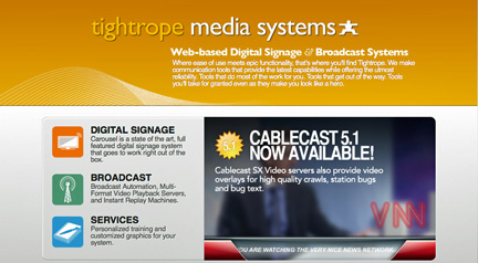 [SatNews] Tightrope Media Systems has announced the Cablecast SXHD LE video server, a new multiformat HD and SD video server that joins Tightrope's Cablecast family of all-in-one broadcast automation systems. SXHD LE is a single-box, 1-RU solution for video playout that includes 4 TB of storage, built-in branding functions, and a host of other time- and money-saving features at an attractive price, making it ideal for small-scale broadcast operations such as public, educational, and government-access TV stations; campus television; local origination cable channels; hospitals; and cruise ships.