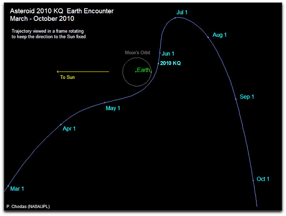 Graphic depicting the trajectory of near-Earth object 2010 KQ. Image credit: NASA/JPL
