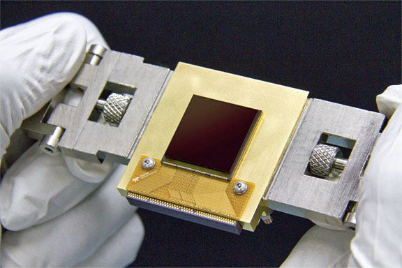 The Near-Earth Object Camera (NEOCam) is a mission proposed to NASA to find potentially hazardous asteroids. The mission will use a new sensor, called the NEOCam chip, that has more pixels and better sensitivity than previous generations of infrared sensors. Made of mercury, cadmium and tellurium, the new chip is about the size of a postage stamp and is optimized for detecting the faint heat emitted by asteroids circling the Sun. The NEOCam chip is the first megapixel sensor capable of detecting infrared wavelengths at temperatures achievable in deep space without refrigerators or cryogens.