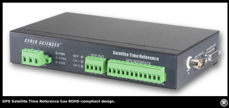 Cyber Sciences announces the STR-100 Satellite Time Reference is RoHS (Restriction of Hazardous Substances) compliant and lead free. Cyber Sciences, Inc. is dedicated to environmental concerns and with this latest release of the STR-100, all products are RoHS-compliant and lead free. The RoHS Directive restricts the use of six hazardous materials in the manufacture of various types of new electronic and electrical equipment including lead, mercury, cadmium, hexavalent chromium, polybrominated biphenyls, and polybrominated diphenyl ethers.