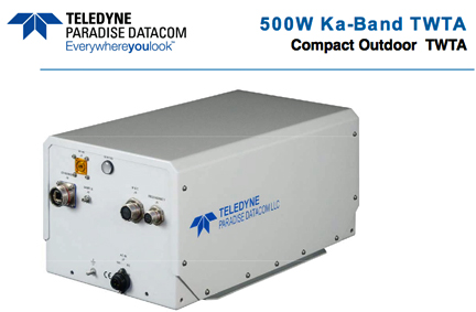 Powered by Teledyne’s MEC-5530 500 watt traveling wave tube, the new TWTA shares the same architectural platform with the company’s popular Compact Outdoor SSPA (solid state power amplifier). In addition to the tube, the TWTA’s linearizer, power supply, L-band BUC (block up converter), and all remaining components were produced internally using the broad R&D and manufacturing capabilities of Teledyne Microwave Solutions (TMS).