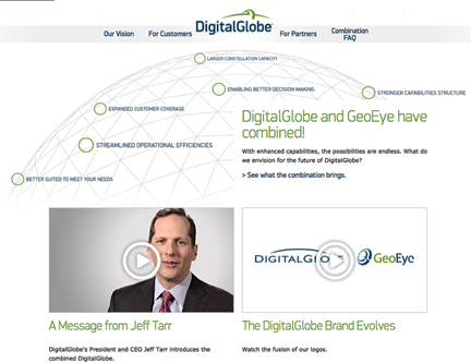 Mr. Tarr continued, "We have a deep bench of talented and experienced team members from both GeoEye and DigitalGlobe, and I am confident that, together, we will continue to raise the bar for innovation and service in our industry. I look forward to working closely with our Board of Directors, our leadership and all of our team members to ensure a seamless transition for our customers worldwide."