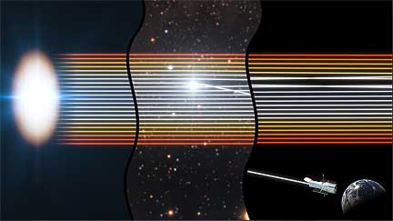 The Hubble Space Telescope is a project of international cooperation between ESA and NASA. The study, entitled “A study of gravitational lens chromaticity with the Hubble Space Telescope”, will appear in the December 1 issue of the Astrophysical Journal. The international team of astronomers consists of: J. A. Muñoz (University of Valencia, Spain), E. Mediavilla (Instituto de Astrofísica de Canarias, Spain), C. S. Kochanek (Ohio State University, USA), E. E. Falco (Harvard-Smithsonian Center for Astrophysics, USA) and A. M. Mosquera (University of Valencia and Ohio State University).