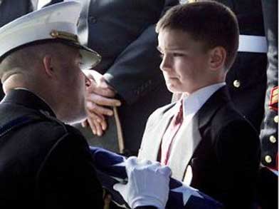 Choking back tears, Christian Golczynski accepted the flag from his father's casket. Photographer Aaron Thompson described this moment as "the most emotionally moving event I may have ever witnessed and may ever witness in my life." (The Daily News Journal)