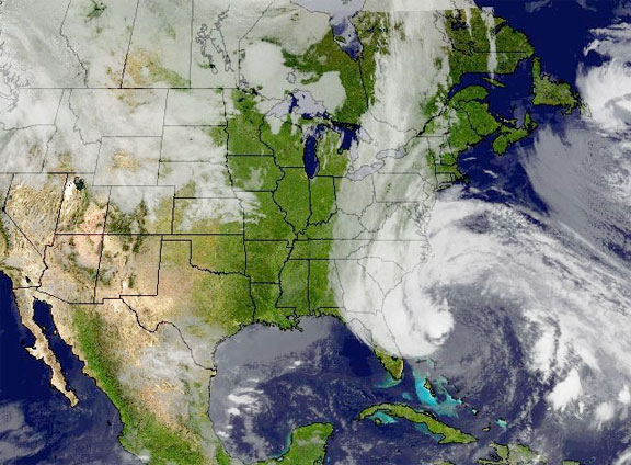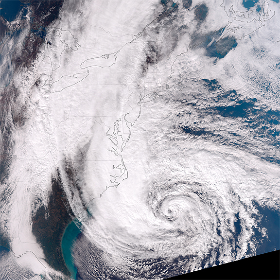 ...Moderate Resolution Imaging Spectroradiometer (MODIS) on NASA’s Terra satellite acquired the following image of Hurricane Sandy off the southeastern United States.