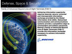 Boeing has successfully demonstrated high-data-rate transmissions between a Family of Advanced Beyond Line-of-Sight Terminals (FAB-T) system and a test terminal for the Advanced Extremely High Frequency (AEHF) satellite. This was one in a series of development tests that are demonstrating extended data rate voice, text and data communication with a FAB-T unit. FAB-T will provide the U.S. Air Force and U.S. Navy with protected wideband satellite communications in support of command and control of U.S. nuclear forces. The demonstration, conducted in August at Northrop Grumman Aerospace Systems in Redondo Beach, California, involved a FAB-T unit and an AEHF Universal System Test Terminal (AUST-T) communicating through a ground AEHF payload. Using the latest program hardware, the terminal team successfully conducted extended data rate (XDR) re-key, XDR text communications, and dual FAB-T log-on with the AEHF payload. In separate testing essential to operating the fielded FAB-T system, Boeing also interfaced with the AEHF Satellite Mission Control Subsystem, demonstrating XDR capability with the AEHF ground satellite.