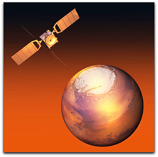 HRSC aboard Mars Express — Credits: Alex Lutkus + DLR/FU Berlin/ESA 2003