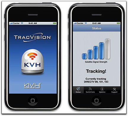 Unveiled in late 2009, the TracVision® HD7 from KVH Industries, Inc., (Nasdaq: KVHI) set a new standard in maritime satellite TV design, offering boaters a DIRECTV® HD TV experience exactly like they enjoy at home thanks to simultaneous reception of two DIRECTV Ka-band satellites and one Ku-band satellite. As TracVision HD7 systems now arrive at marine electronics dealers nationwide, one of the TracVision HD7's key innovations is also now available for free from the Apple iTunes Store — the KVH TracVision iPhone® app.