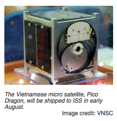 The satellite is planned to stay at the ISS for two to three months before going into space. In May of this year, Vietnam's first remote sensing satellite—VNREDSat-1—was launched into orbit from the Kourou launch pad in French Guiana.