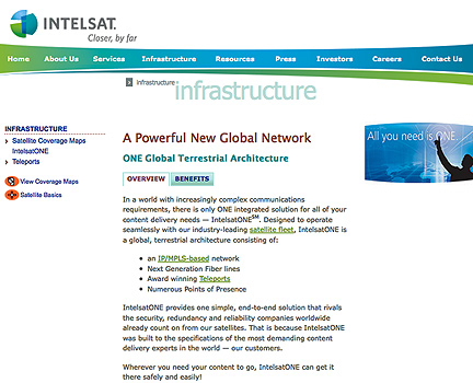 Intelsat S.A. has formed an alliance with BT that expands the reach of its IntelsatONE terrestrial network to new locations in Europe, Africa and Asia. The Intelsat and BT media fiber alliance interconnects Intelsat's MPLS-based IntelsatONE fiber network, which consists of fiber and points of presence (PoPs) located in major cities and teleports, with BT’s MPLS-based Global Media Network (GMN). The two networks will initially interconnect in New York and London. The alliance will develop and market seamless, next-generation managed media solutions with global terrestrial and satellite reach that operate across two complementary media networks.