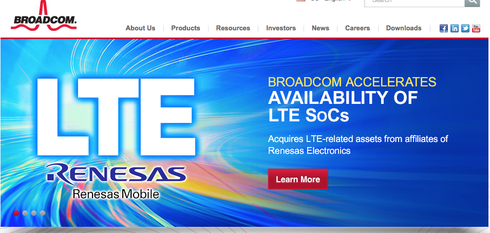 "Today's transaction firmly establishes Broadcom's presence in the rapidly growing LTE market with a production-ready, carrier-validated SoC," said Scott McGregor, President and CEO of Broadcom. "Our LTE platform will leverage Broadcom's rich connectivity portfolio and will deliver an optimized feature set for this fast growing market."