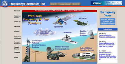 and synchronization products for space and terrestrial applications. The Company's products are used in commercial, government, and military systems, including satellite payloads, missiles, UAVs, aircraft, GPS, secure radios, SCADA, energy exploration and wireline and wireless communication networks. Frequency has received more than 60 awards of excellence for achievements in providing high performance electronic assemblies for 120+ space programs.
