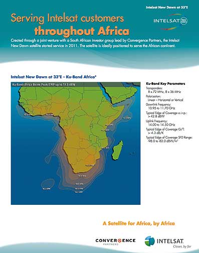 "The new Intelsat New Dawn MCPC platform offers programmers in Africa and throughout the world complete end-to-end solutions for delivering content to their affiliates and consumers in sub-Saharan Africa," said Jon Osler, Intelsat's managing director for Africa. "The addition of this platform supports entry for new channel carriers and adds to our global portfolio of content distribution solutions."