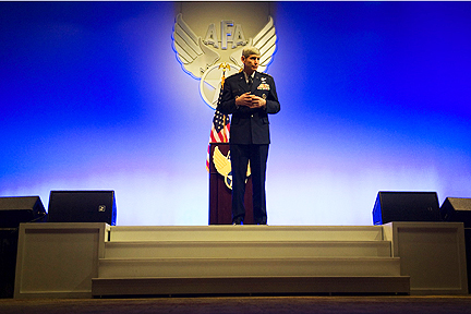 The general concluded his speech by calling attention to the people behind the highly-technical mission —- some 46,000 total force Airmen and contract employees "from acquisition to operations to logistics" — who are dedicated to supporting the space mission. "While space and cyberspace certainly showcase our innovation and advanced technology, let us not forget that it is our Airmen, through their daily professional efforts, who make it all happen." (Source: USAF website, Master Sgt. Ben Gonzales)