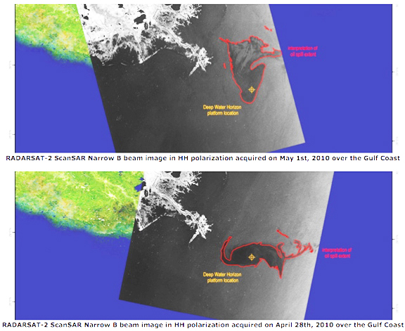 The information obtained through its surveillance service supports the decisions being made to minimize environmental impact and optimize clean-up. When events of the magnitude experienced in the Gulf Coast occurs, there is an urgent need to identify scope and direction of an oil spill. Satellite imagery acquired immediately after the event provides updated views of how the oil spill is moving, including size and direction of possible areas of impact.