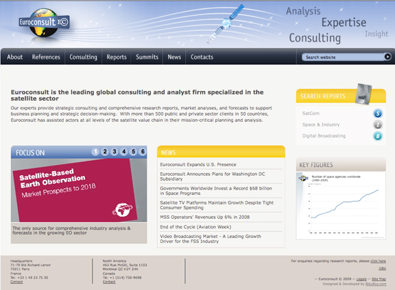 The Paris-based company opened its first international office in Montreal in 2008 to increase its focus on the North American market. The opening of the U.S. subsidiary is another step in Euroconsult’s long-term strategy of establishing a team of industry experts that can respond quickly to the wide-ranging needs of North American clients for due diligence, market analysis, strategic planning, policy assessment and other services. Euroconsult works with a range of clients throughout the satellite value chain, including government agencies, manufacturers, operators, service providers, and investors.