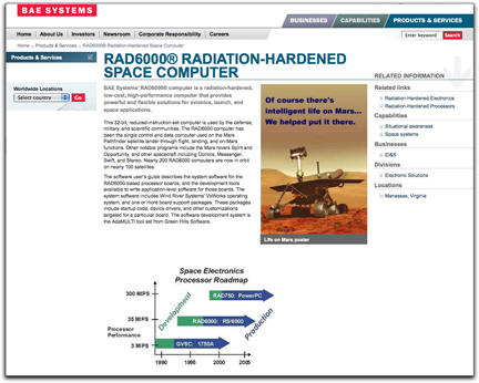 Two RAD6000 radiation-hardened computers aboard NASA's Atmospheric Imaging Assembly and the Helioseismic and Magnetic Imager payloads will process large volumes of scientific data and manage the satellite's directional orientation. A RAD750 computer will run the software that keeps the spacecraft in orbit. The first mission to be launched for NASA's "Living With a Star" program. The SDO will address aspects of the sun and solar system that directly affect life on Earth, and it will study the origins of solar activity and how space weather derives from it. Measurements of the interior of the sun, the sun's magnetic field, the hot plasma of the solar corona, and the irradiance that creates the ionospheres of the planets will help scientists predict solar variations. Space weather can threaten astronauts, aircraft, satellite communications, navigation systems, and electrical power on Earth. BAE Systems provides computers capable of withstanding the radiation, temperature, vibration, and other extremes encountered in space flight. The latest version, the RAD750, was developed through a partnership among BAE Systems, the Air Force Research Laboratory, and NASA's Jet Propulsion Laboratory. The RAD6000 is the predecessor to the RAD750.