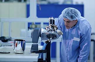 A RUAG Space Employee in Zurich, Switzerland assembles a Solar Array Drive Mechanism for Galileo. Photo: RUAG Space