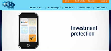 O3b Networks, based in Singapore, is a global satellite service provider building a next-generation satellite network for telecommunications operators, Internet service providers, enterprise and Government customers in emerging markets. The O3b system will combine the global reach of satellite with the speed of a fiber‐optic network providing billions of consumers and businesses in nearly 180 countries with low‐cost, high‐speed, low latency Internet and mobile connectivity.