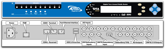 ADTEC Digital will be demo'ing their DTA-3050 Multiplexer at NAB 2010 in Las Vegas, Nevada, April 12th through 15th. The DTA-3050 aggregates and processes MPEG, ATSC Digicypher, or DVB based services for traditional (satellite, cable, terrestrial) services. The unit boasts 10 ASI inputs, each supporting wire speed, a three-way mirrored ASI output, GIGE and optional SMPTE-310. Redundancy for ASI and SMPTE-310 is supposted with an intelligent built in relay-by passed switch. The DTA-3050 is IPTV and BBTV ready today, it supports multicast and unicast configurations including SPTS/UDp, MPTS/UDP, MPEG and DVB tables. Encryption support includes DVB-CSA with Ethernet Simylcrypt, AES for use with Simylcryot compatible Conditional Access management Servers ( CAS) vendors.