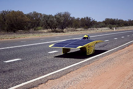 The University of Michigan's solar car going through its paces. Photo courtesy of the University of Michigan.