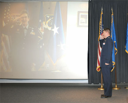 ...Col. John Anttonen, the new director of the Operationally Responsive Space Office, at the Assumption of Command via video teleconference, March 8th. Located at Kirtland AFB, New Mexico, the ORS Office is now aligned under the purview of SMC and Air Force Space Command.