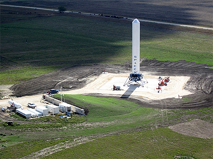 ...two stories in an 8-second duration test hop. The rocket rose 17.7 feet (5.4 meters), hovered, and touched back down safely on the pad at SpaceX’s rocket development facility in McGregor, Texas.