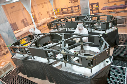 Technicians complete the primary mirror backplane support structure wing assemblies for NASA's James Webb Space Telescope at ATK's Space Components facility in Magna, Utah. Photo courtesy of ATK.