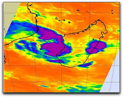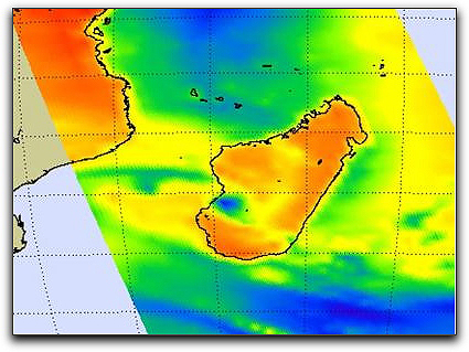 NASA’s Atmospheric Infrared Sounder (AIRS) instrument captured an infrared image of Fami’s cloud temperatures on February 1 at 2231 UTC (5:31 p.m ET) as it was approaching landfall in Madagascar. Heavy rain was falling from high thunderstorm cloud tops that were as cold as minus 63 F.