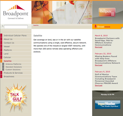 SandRidge Energy, a natural gas and crude oil company headquartered in Oklahoma City, Oklahoma, owns and operates several offshore platforms in the Gulf of Mexico that house vital communications equipment for the Federal Aviation Administration. In 2009, the Federal Aviation Administration began upgrading its aviation communications equipment used for commercial, military and defense purposes to provide enhanced connectivity between offshore flights and land-based control towers. Broadpoint was named as the communications provider of choice for this initiative due to the Company’s unique ability to offer constant connectivity alongside a custom installation and service package. Broadpoint offered unmatched operational, legal and logistical expertise, in addition to its reliable network, to the Federal Aviation Administration and SandRidge Energy as they worked together to shift the Federal Aviation Administration’s offshore aviation communications operations from one Sandridge platform to another in the Gulf of Mexico. In addition, Broadpoint has, for a number of years, provided communications services to the Federal Aviation Administration at two other locations, offering access to its 100,000 square mile GSM/GPRS/Edge wireless network in the Gulf of Mexico.