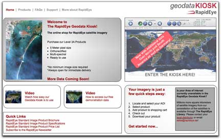 Paulo. The RapidEye Geodata Kiosk, RapidEye‘s online source for satellite imagery, became available in early December 2009, and was introduced with the entire country of Germany available for purchase. This became the foundation of RapidEye’s commitment to making a selection of its ever-growing catalog of data from around the globe available online to anyone at anytime. Over the course of 2010, its online source for RapidEye imagery will continue to expand on a daily basis.