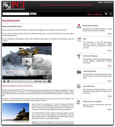 PCI Geomatics has won the Geospatial Innovator Award from GeoTec Media for its GeoConference software solution, as publicized at the GeoTec Event in Toronto, Ontario. This award is presented to a geospatial tool developer that has created new software or hardware that expands the possibilities of the geospatial industry. GeoConference allows groups to share and view maps and images interactively over the web, in real-time. It contains tools for hosting interactive geospatial teleconferences, linking clients in remote locations and facilitating connections to geospatial databases. PCI Geomatics won the Geospatial Innovator Award previously in 2009 for GeoImaging Accelerator (formerly ProLines GeoImaging Server).
