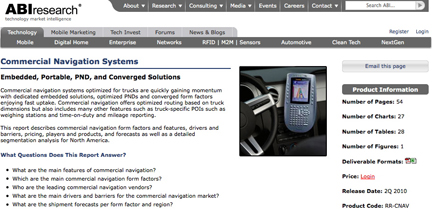 Unsurprisingly, different form factors – dedicated embedded solutions, commercial grade PNDs and converged solutions – are vying for success. Traditional fleet management vendors such as Qualcomm and Navman Wireless are increasingly integrating commercial navigation into their solutions based on software from vendors such as Maptuit or Mireo. However, the recent introduction of commercial grade PNDs by Garmin, Cobra, and Rand McNally provides a cheaper alternative for smaller fleets. Navigon even allows downloading aftermarket truck map attributes on consumer PNDs. Finally, vendors such as Telenav and ALK Technologies offer smartphone-based commercial navigation solutions.