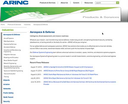 These five tools and solutions will be highlighted August 23-26 at the 2010 Team C4ISR Symposium in Baltimore, MD, hosted by U.S. Army CECOM. ARINC currently supports all branches of the U.S. Military on nine major DoD acquisition vehicles, including the new U.S. Army CECOM R2-3G (Rapid Response-3rd Generation) contract just announced. ARINC received its award notification July 30 following a re-compete of the popular acquisition program.