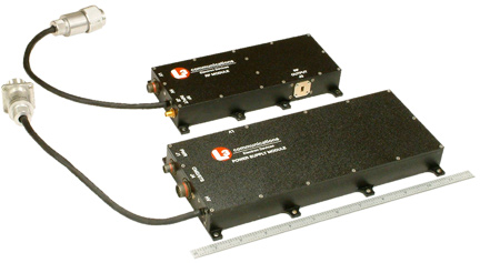 L-3 Electron Devices has introduced their latest Microwave Power Modules (MPMs) for Ku- and Ka-band communication applications. The new modules are geared for use in airborne, naval, or ground communications applications and were specifically designed in a revolutionary weight-balanced, split-package configuration intended for direct antenna mounts. Available in either Ku- or Ka-band configurations, L-3’s new MPM designs significantly reduce conventional RF system losses, enhancing overall efficiency while also improving problematic pointing and position stabilization issues. At just 1.1 inches high, this compact two-piece set weighs in at a balanced 5.2 pounds and is MIL-STD-461E compliant. For systems requiring MIL-STD-188-164 linear power, an integrated pre-distortion linearizer is used to produce 50 watts of linear power in Ku-band or 25 watts of linear power in Ka-band. For “sat power”-oriented systems, the integrated linearizer can be removed, allowing significantly higher CW power levels.