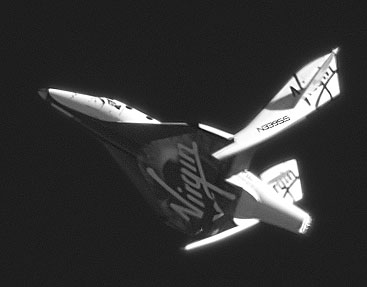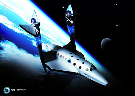 Artistic rendition of SpaceShipTwo with wings in feathered position, courtesy of Virgin Galactic