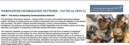 General Dynamics C4 Systems, the prime contractor for the Warfighter Information Network-Tactical (WIN-T), awarded Lockheed Martin [NYSE: LMT] a $105 million order to produce additional communications equipment for WIN-T, Increment 2 which will deliver on-the-move broadband networking capability using satellite and radio links, focusing on mobile formations to allow nodes to operate on-the-move from Division and Brigade down to Company levels. Under this contract, Lockheed Martin will deliver transmission subsystem radios, modems, antennas and mast systems which will be integrated into a variety of combat vehicle platforms. The transmission subsystem provides the foundation for the WIN-T network’s data transfer capability over a highly dispersed, non-contiguous area. Integrating SATCOM, line-of-sight and terrestrial waveforms, this “self healing” network provides high-bandwidth, on-the-move connectivity which dynamically switches between terrestrial and satellite waveforms, depending on the terrain. For example, if a commander is moving, and the terrestrial link quality begins to deteriorate, the system automatically connects to SATCOM. As a result, brigade combat teams maneuvering across wide geographic areas can be linked with commanders and the Global Information Grid through an on-the-move broadband networking capability. The next iteration, WIN-T Increment 3, introduces an airborne network node to the WIN-T system as well as increased network reliability and capacity; smaller and more tightly integrated communications and networking gear for users. General Dynamics is teamed with Lockheed Martin, BAE Systems, Harris Corporation and L-3 Communications on the WIN-T team.