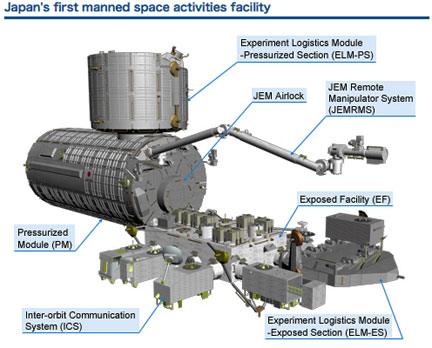 Kibo configuration when all the components are assembled on orbit. Image courtesy of JAXA.